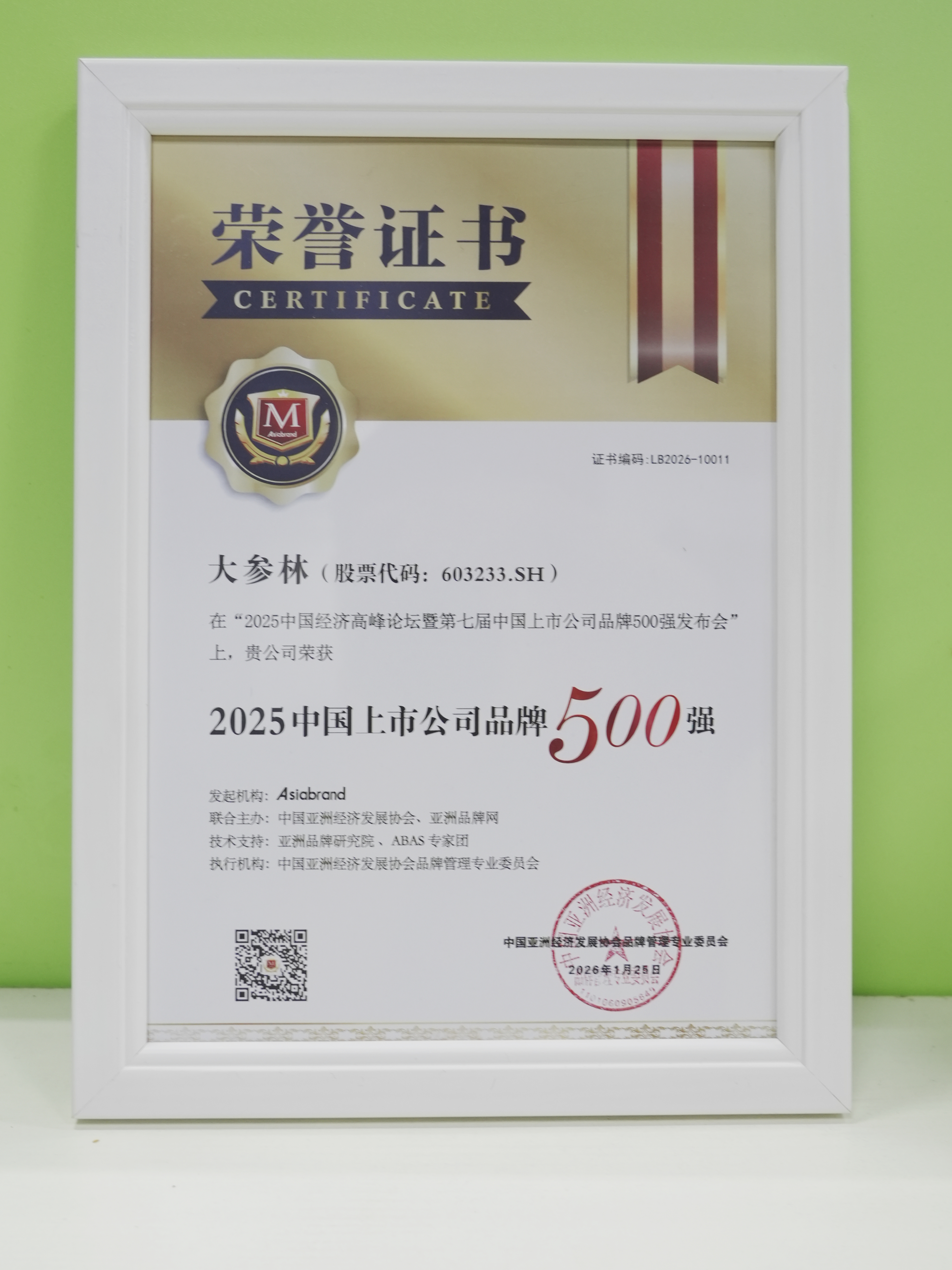 大参林荣登“2025中国上市公司品牌500强”榜单,位列榜单第279名。品牌评价按照品牌文化承载性、质量和服务水平、创新引领性、品牌稳定度、品牌领导力、客户关系强度、法律保护度和企业信用度共八大维度,22项细分指标作为评分标准。